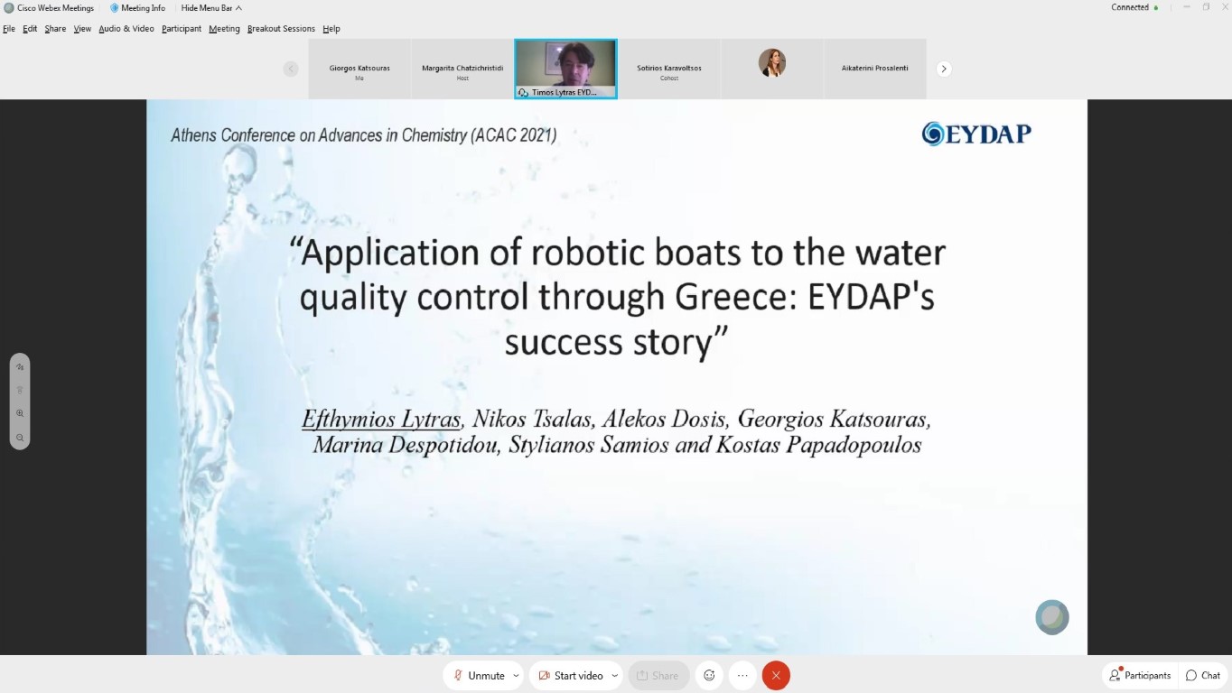 - "Application of robotic boats to the water quality control through Greece: EYDAP's success story", by Dr. Lytras