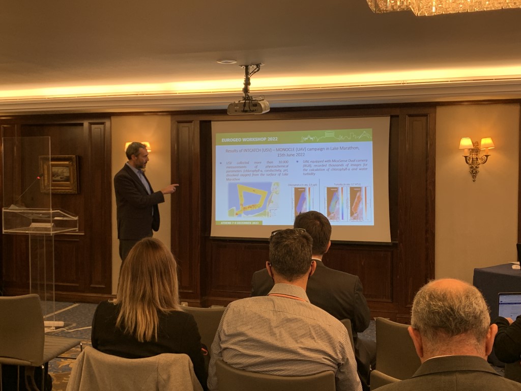 The Research and Development Department of EYDAP (R&D), participated in EuroGEO workshop 2022 "Towards an integrated and convergent EuroGEO" that held from 7 to 9 December 2022 in Athens, Greece. EuroGEO combines the contributions of European members of the Group on Earth Observations (GEO), a partnership of more than 100 national governments, over 100 participating organisations and the European Commission. GEO envisions a future where decisions and measures for the benefit of humankind are informed by coordinated, comprehensive and sustained Earth observations. The annual workshop brings together European players interested in and actively contributing to EuroGEO. This year, the workshop is organised by the European Commission, the General Secretariat for Research and Innovation of the Hellenic Ministry of Development and Investments, and the Greek GEO Office operating within the National Observatory of Athens.